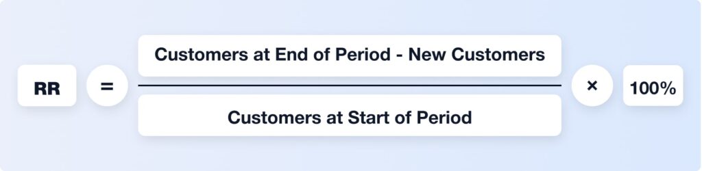 Example: If 1,000 customers bought from you in January and 600 also bought in February, your retention rate is 60%.