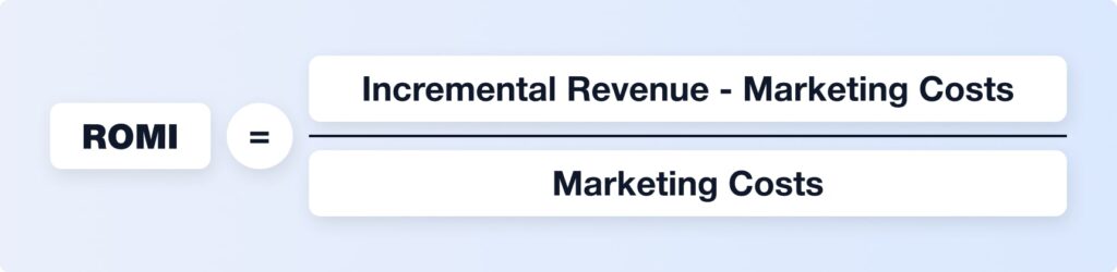 Example: If you spend $10,000 across all marketing channels and generate $50,000 in incremental revenue, ROMI = 5.